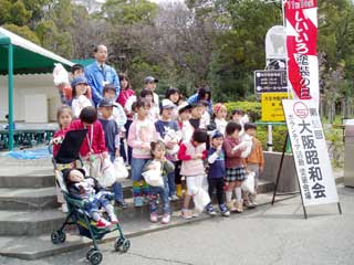 まず幼稚園児らが
